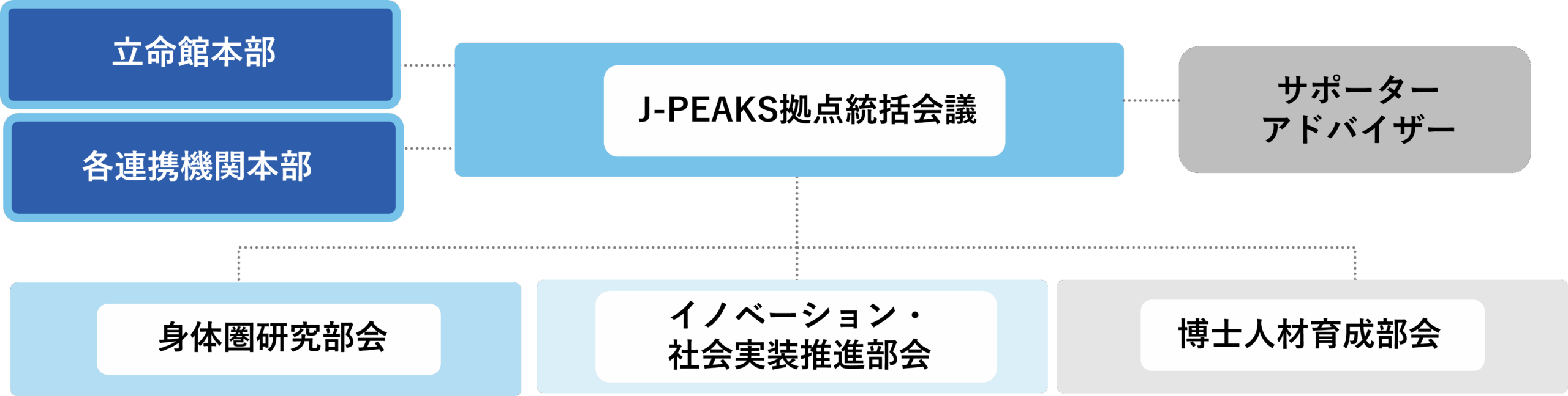 本学ではJ-PEAKS事業を推進するにあたり、学長を議長とし、連携機関を含めた「J-PEAKS拠点統括会議」を設置しています。